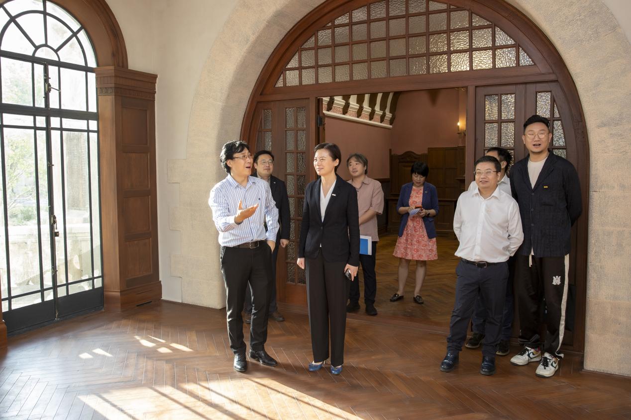 沈军一行还参观了我校淮海新校区以及上音歌剧院。双方表示,愿资源共享、优势互补,将淮海新校区的历保建筑与东方卫视等媒体的经典栏目有机结合,共建全新国际音乐节品牌,讲好中国故事,在新时代携手展开更深入的合作。