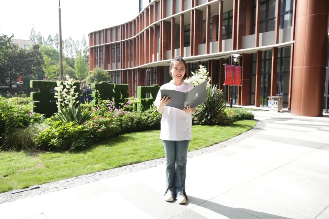 仪式正式开始。上音国旗护卫队迈着铿锵步伐护卫国旗入场。这是上音首支全女子队列,由12名二级院系学生组成。伴随着《义勇军进行曲》激昂的旋律,鲜艳的五星红旗冉冉升起。全体师生肃立行注目礼,齐声高唱国歌。歌声嘹亮,穿透高耸的教学大楼,传递着上音人的赤子之心。