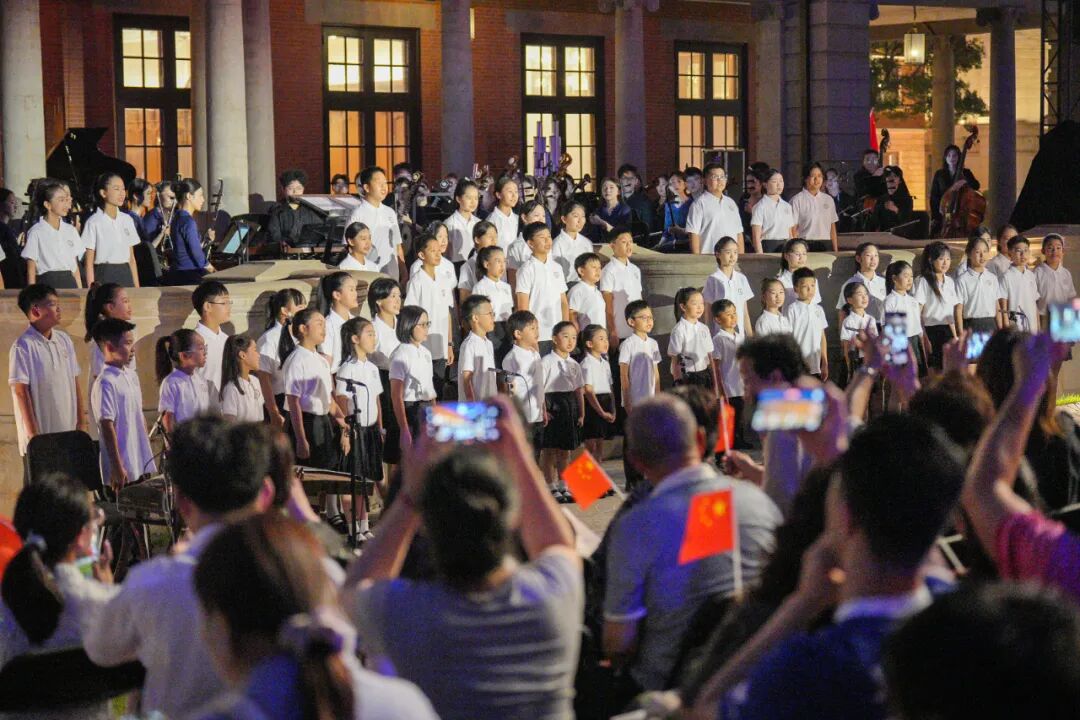 今天,上海音乐学院在汾阳路校区城市音乐会客厅前草坪,为广大市民和音乐爱好者献上一场“国庆草坪音乐会”。傍晚时分,华灯初上,在秋夜的微风中,音符与百年建筑交织共鸣,为“人民城市”的生动实践,写下华美的注脚。