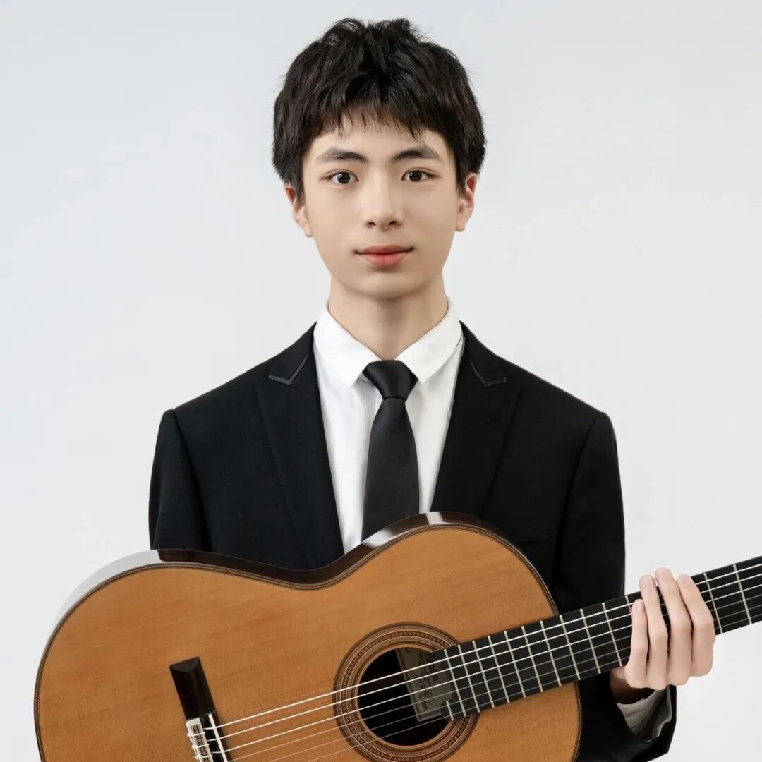 上海音乐学院附中古典吉他专业高一年级在读,师从闵振奇副教授。在校期间曾获得意大利佛罗伦萨吉他大赛一等奖,以及其他国际古典吉他大赛一等奖11个;曾被评为上海市优秀中学生,获得上海国际青少年管弦乐团奖学金,入选上音“音才助飞”项目。2025年受邀赴西班牙托雷维耶哈市政音乐厅举办个人独奏音乐会。