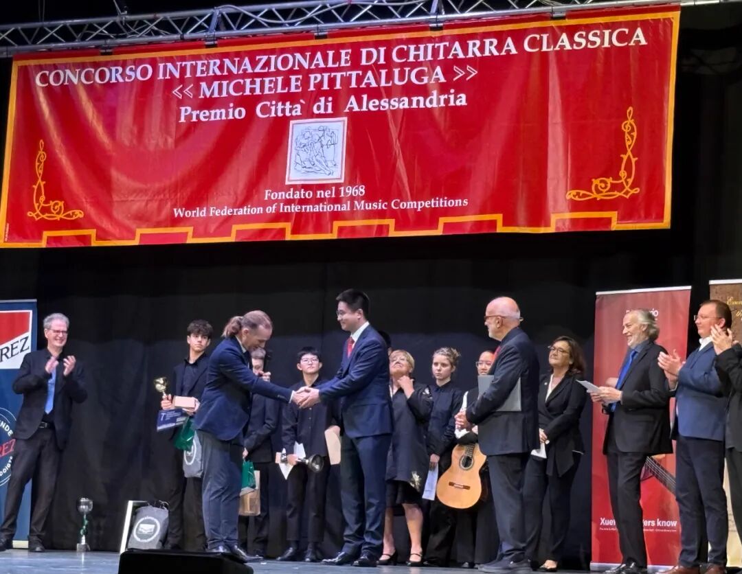 值得一提的是,今年7月,上音成功举办皮塔卢加国际古典吉他比赛亚洲预选赛,让这项历史悠久的国际吉他赛事首次落户中国(上海)。意方为亚洲预选赛获奖选手免去报名费,并提供国际旅费、住宿等支持。此外,闵振奇副教授也被授予意大利米凯尔・皮塔卢加国际古典吉他比赛(国际)传播大使荣誉头衔。
