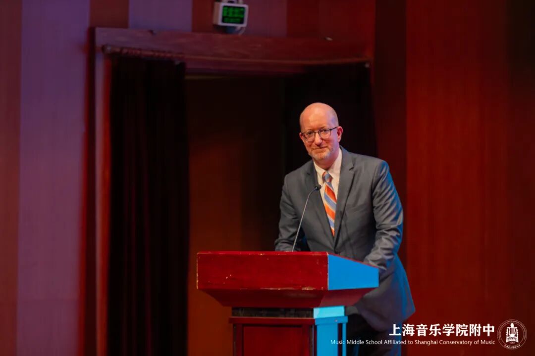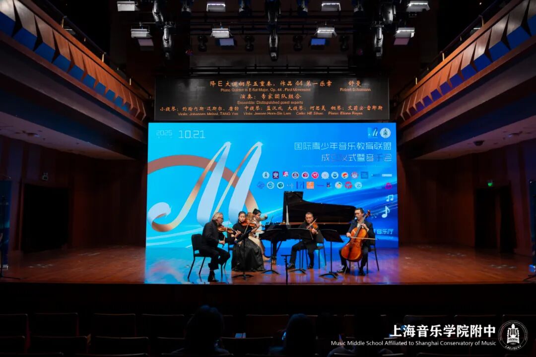 上海市艺术教育委员会主任陈克宏、上海音乐学院党委书记裴小倩、上海音乐学院副院长冯磊和国际青少年音乐教育联盟理事单位和成员单位的领导和老师出席仪式暨音乐会,主持由上音附中居文沛与陈巍岭担纲。