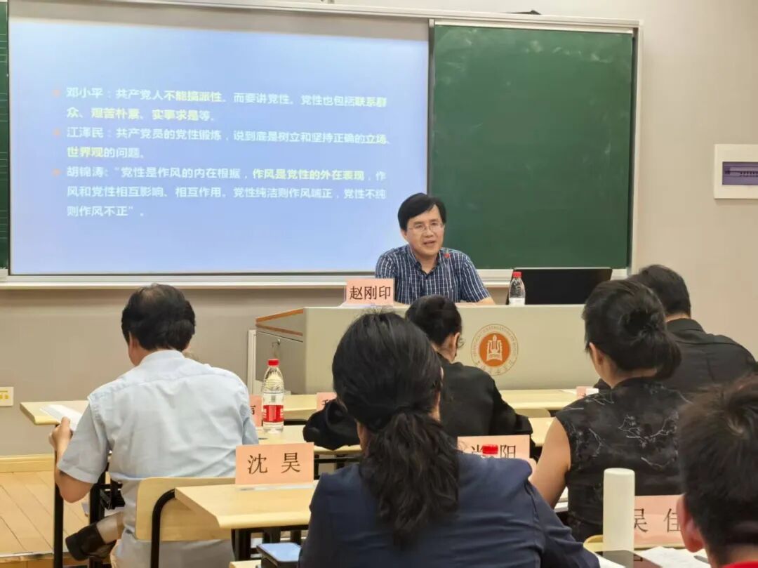 党委副书记徐卫,党委副书记、纪委书记、监察专员王磊,教务处处长杨茹文,作指系主任周湘林,上海市委党校党史党建教研部副主任赵刚印,市教卫工作党委研究室主任林炊利分别作专题报告。