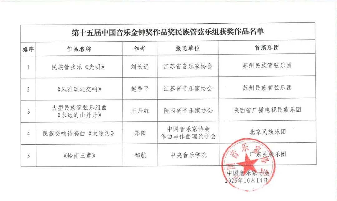 第十五届中国音乐金钟奖今晚落下帷幕。在这场代表中国音乐最高专业水准的赛事中,上海音乐学院师生校友以兼具艺术高度与影响力的集体亮相,收获5部作品奖,8项表演奖;另有8部作品入围终评,13名学生入围决赛。上音人闪耀各类金钟舞台,集中展现在拔尖创新艺术人才培养和高水平文艺创作方面的丰硕成果。