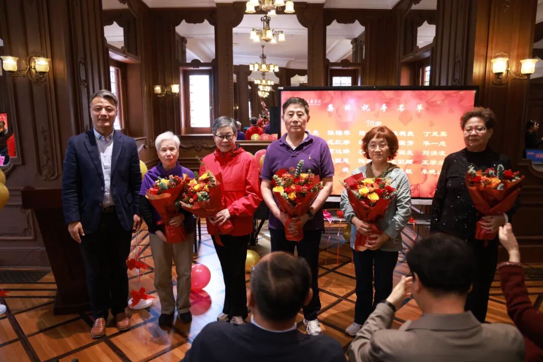 徐卫代表学校党政领导班子及全体师生,向在场老同志送上节日祝福,并向他们为上音建设发展作出的卓越贡献致以诚挚感谢与崇高敬意。他向老同志报告了学校近期在“双一流”建设、人才培养、教学科研等方面取得的成绩,表示院党委始终高度重视离退休工作,未来将进一步做好服务保障,为老同志提供更多元、更优质的活动场所与条件。衷心祝愿各位老同志、老寿星生日快乐、生活愉快,期待大家继续为学校建设发展贡献智慧和力量。