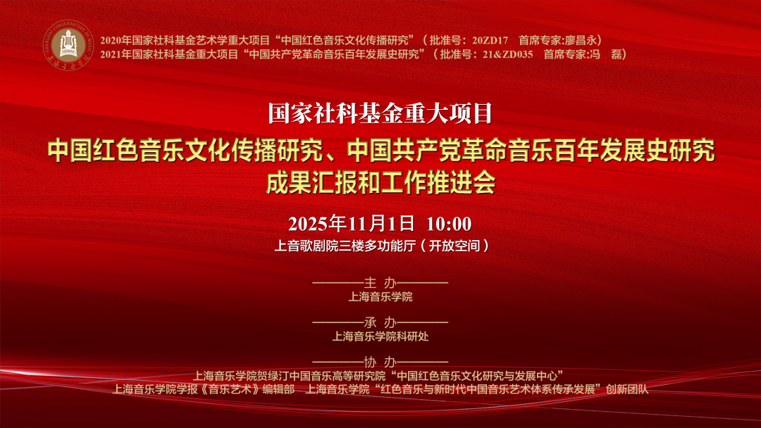 为落实党的二十大和二十届四中全会精神,推进上海音乐学院承担的国家社科基金艺术学重大项目“中国红色音乐文化传播研究”、国家社科基金重大项目“中国共产党革命音乐百年发展史研究”研究工作。“中国红色音乐文化传播研究、中国共产党革命音乐百年发展史研究”成果汇报和工作推进会近日在上音歌剧院隆重举行。