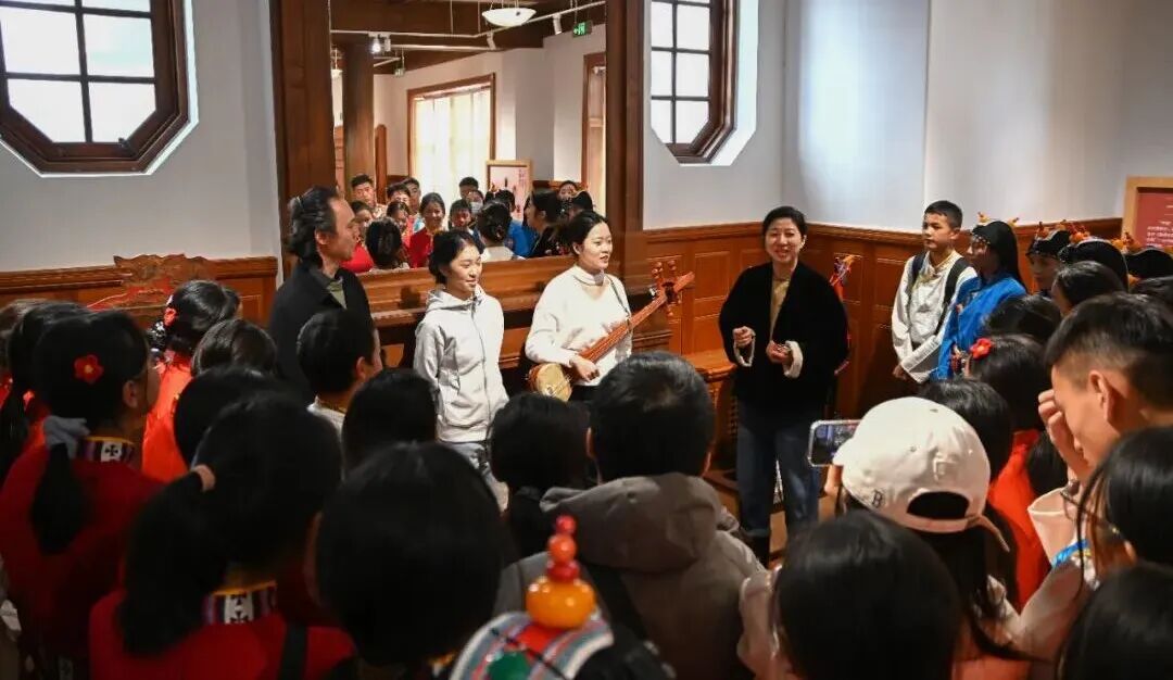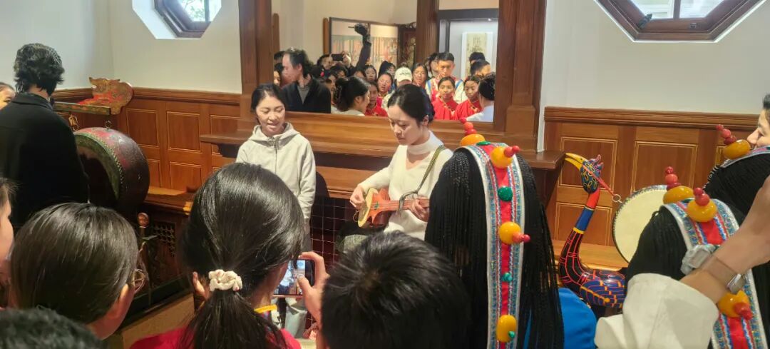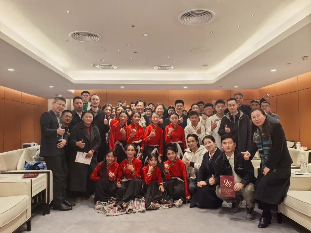 音乐会结束后,上音校领导在上音歌剧院贵宾室与参演师生亲切交流,学生们演唱了精心准备的果洛山歌与青少年原创歌曲,质朴的旋律、真挚的情感传递着来自雪域高原的美好祝福。