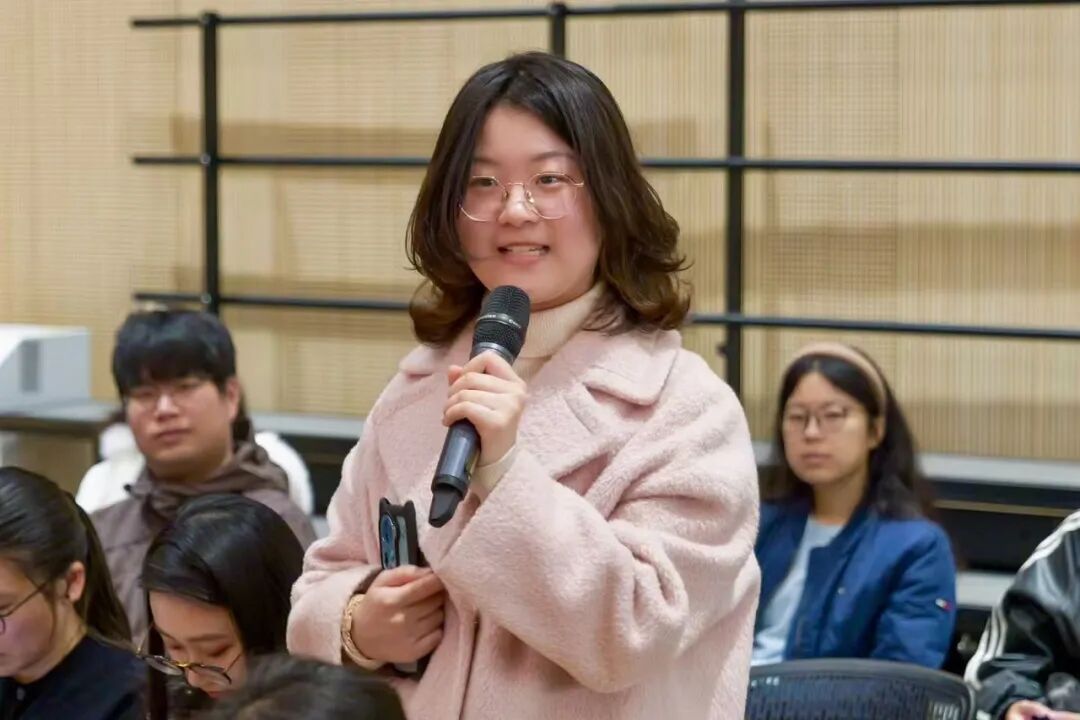 交流互动环节,同学们围绕“新时代青年如何用艺术讲好中国故事”“如何报名成为上音青年说的嘉宾”等展开。党委学(研)工部部长欧阳佳沁及程瑜怀教授一一解答,鼓励同学们勇担文化使命、展现青春作为,踊跃参与上音青年说,共同将这一平台打造为引领青年思想、凝聚青春力量的先锋阵地。