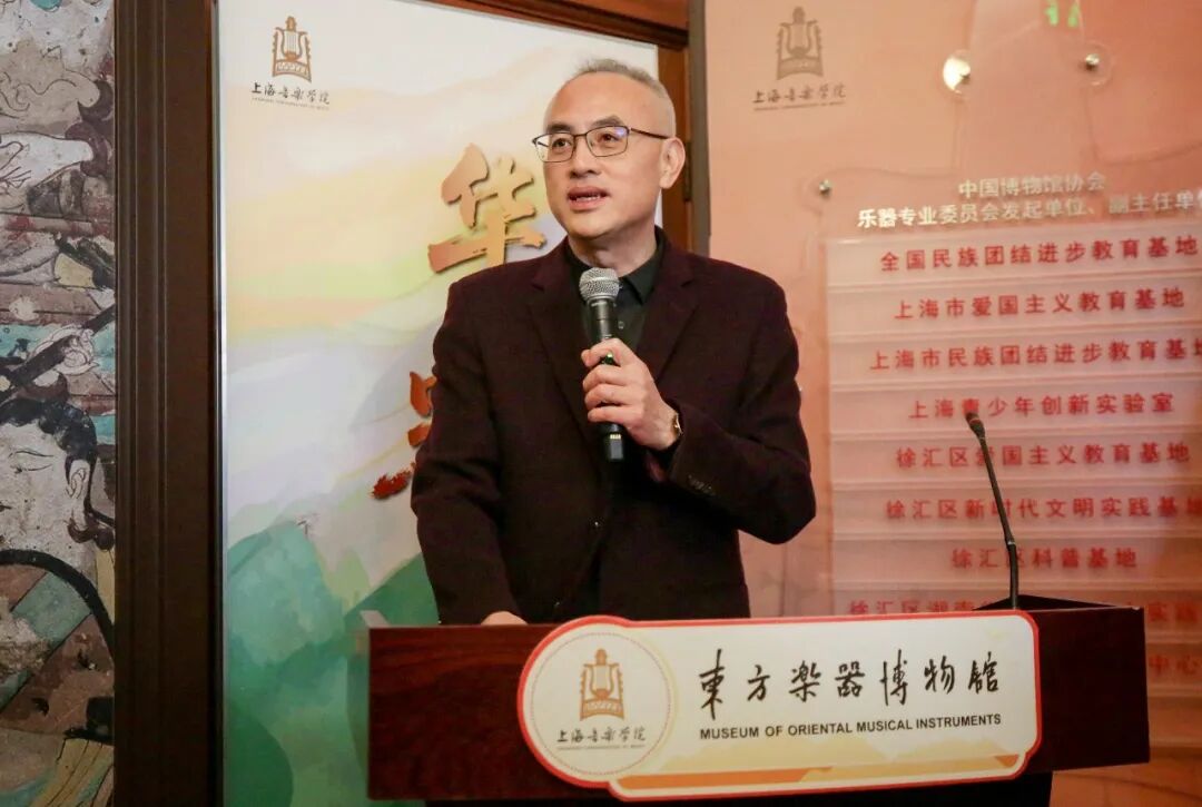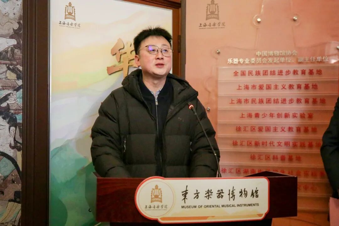 党委副书记、副院长汤隽杰在致辞中指出:“丝竹细语溯千年,鼓乐铿锵谱华章。当河南舞阳贾湖遗址的骨笛清音跨越八千年时空,与现代手风琴的斑斓旋律交织;当蒙古族马头琴的草原长调对话汉族古筝的江南婉转,这场展览便化作一幅可听、可感的中华文明‘音乐长卷’”。他强调,上音始终致力于推动中华优秀传统文化的创造性转化与创新性发展,此次“华夏器韵”年展开幕中,亦有学校联动上海科技馆为市民打造的融汇历史、科技与艺术的全新文化体验。