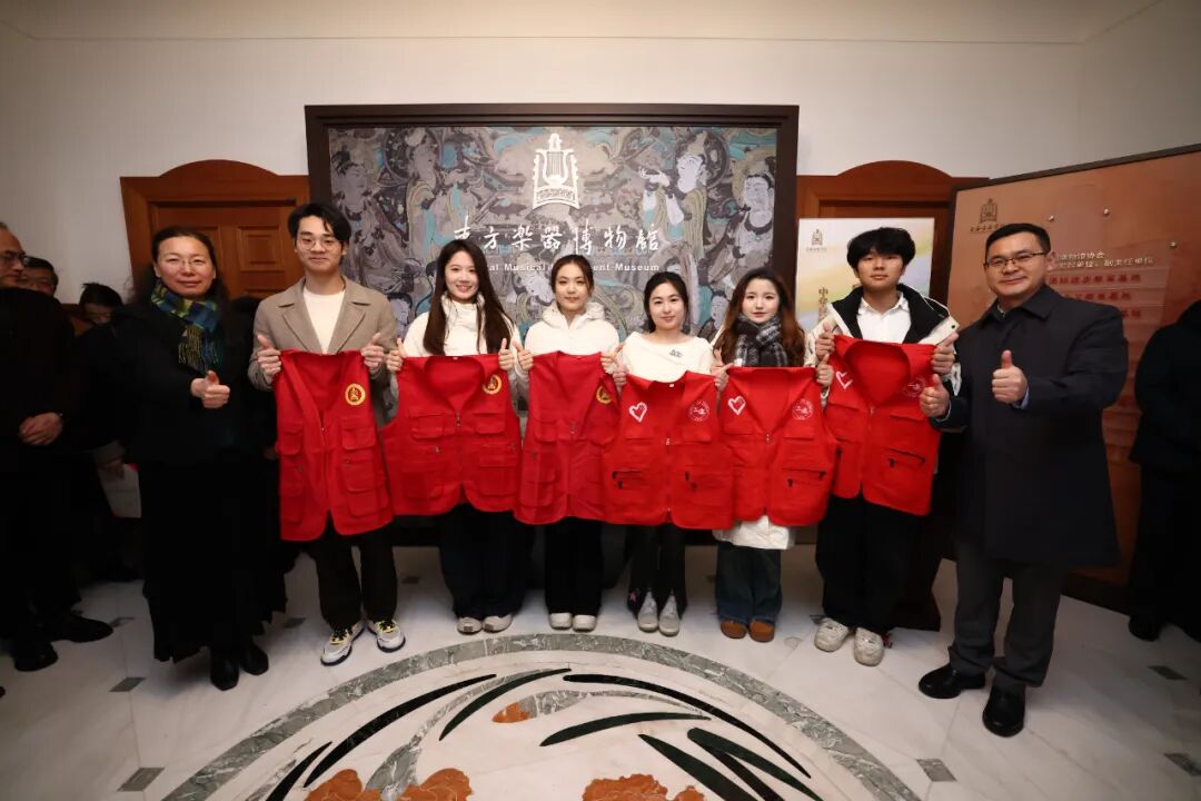 陈云副院长和蔡中奇副校长为2026年新进志愿者服务队代表和立达学院志愿者代表发放工作服装。