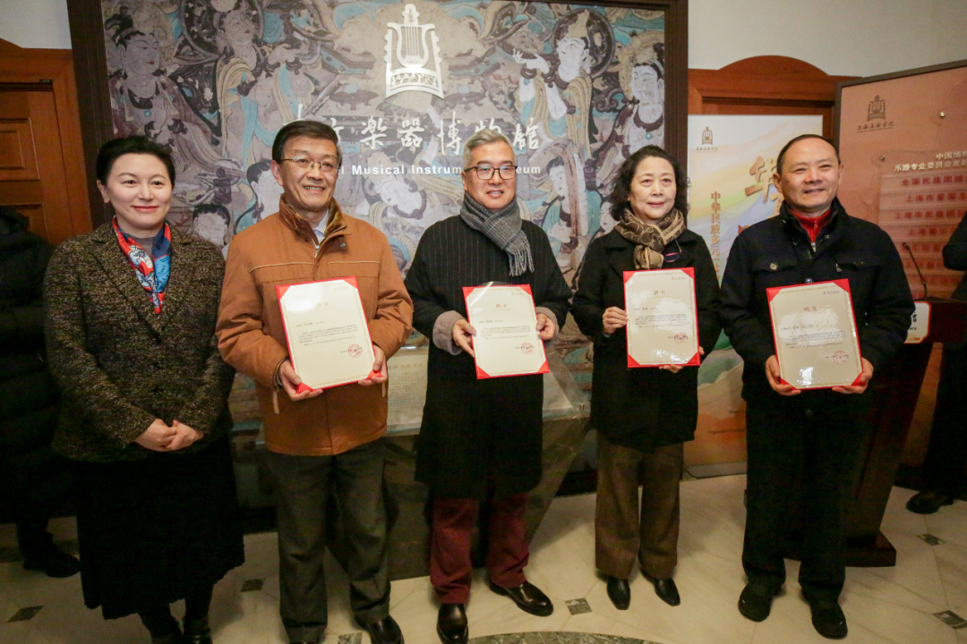 宣传部部长张卓为史寅、应有勤、沈正国、萧梅四位深耕音乐博物馆领域的专家学者颁发东方乐器博物馆特聘研究员证书。活动结束后,与会嘉宾参观“华夏器韵”专题展。