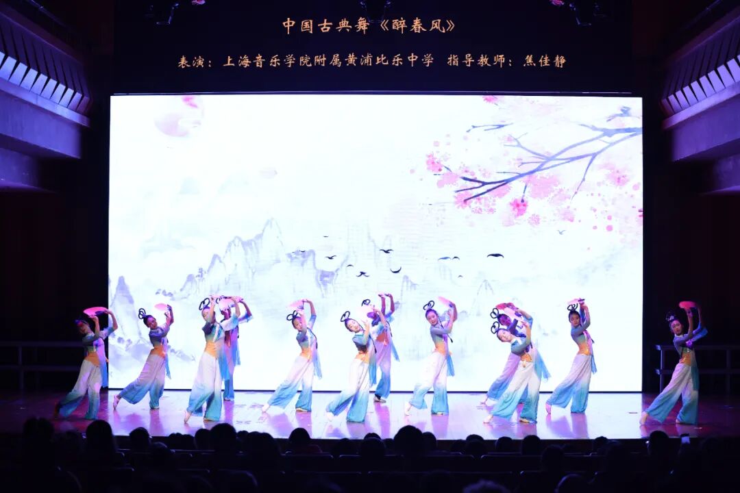 音乐会由上海音乐学院附属安师实验中学民族室内乐团《敦煌新语》《山语·幻》开场,展现学生在民族音乐理解与演绎方面的深厚积淀。上海音乐学院虹口区实验小学合唱团带来的《让我们荡起双桨》《因为你》童声纯净,动人心弦。上海音乐学院附属黄浦比乐中学舞蹈《醉春风》流畅灵动,展现古典舞的意境美。音乐会特邀上海音乐学院研究生演绎钢琴独奏《八幅水彩画的回忆》和巴赫《E大调长笛奏鸣曲》,以专业水准提升整体演出品质。