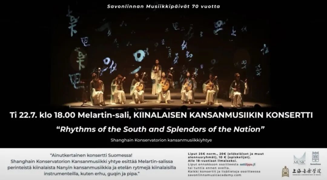 项目自推出以来,完成多轮高质量展演与跨文化传播,形成广泛国际影响力。2025年7月,经精心创编打磨,该项目由院长廖昌永带队登上芬兰萨翁林纳国际歌剧节,向欧洲观众展现中华民乐与非遗南音的独特魅力。上音团队的演出在芬兰引发“上海热”轰动。西班牙著名戏剧制作人Perelada Festioal盛赞上音团队的表现;萨翁林纳市长Markus Hamālainen由衷感谢上音对萨翁林纳歌剧节的长期支持与优质内容推介。该项目受到海内外媒体广泛关注,海外纸媒、新媒体以及社交媒体等多渠道持续关注报道,形成良好的海外传播效应。