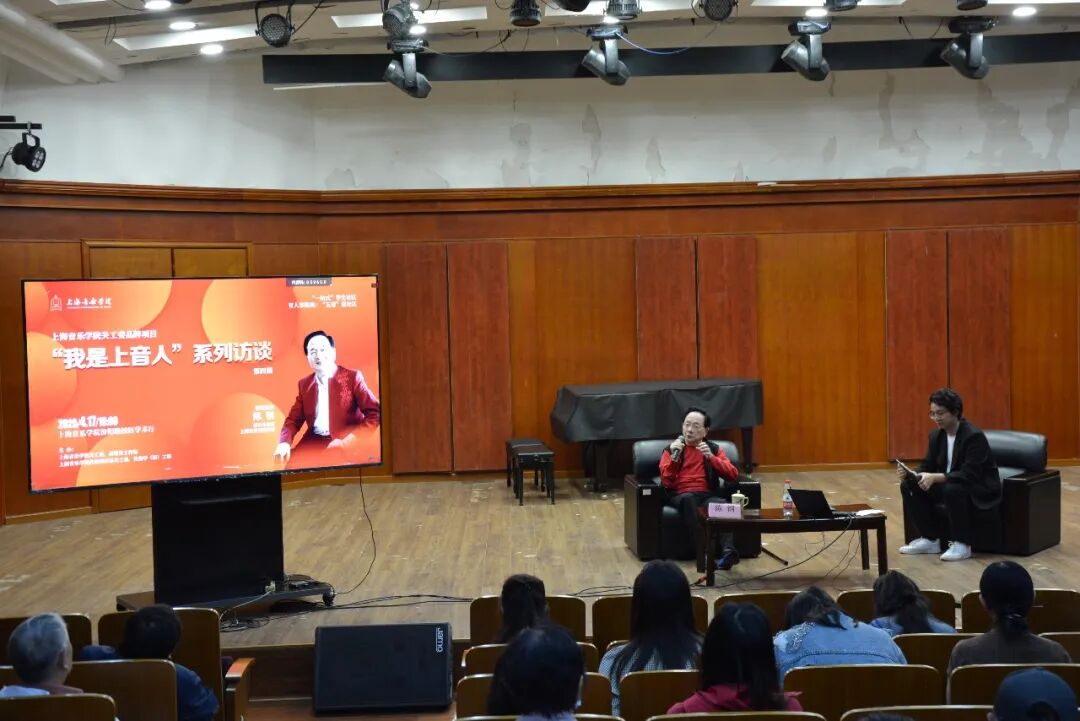 在上音关工委主办的“我是上音人”系列访谈中,他围绕“艺术与时代”主题,结合离休后创作《情殇》《红楼梦》交响作品的经历,提出“好作品要‘扎得深’(扎根文化)、‘立得正’(传递正能量)、‘走得远’(影响一代又一代人)”的创作观。针对学生关于“音乐多元性创新与审美”的提问,他结合父亲陈歌辛《夜上海》等作品的创作背景,阐释海派文化“海纳百川、中西合璧”的特质,倡导青年运用“拿来主义”吸收优秀元素,同时坚守文化根脉。面对“如何平衡商业与艺术”的困惑,他强调“艺术工作者要守住精神底线,才能创作出真正滋养心灵的作品”,为青年学子树立正确的职业价值观。
