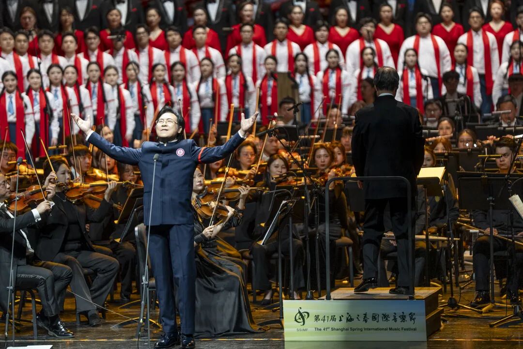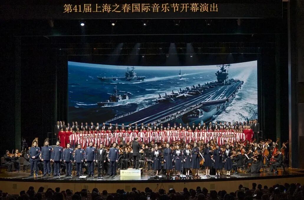 今晚,作为全市首场纪念红军长征胜利90周年的大型主题文艺演出,第41届上海之春国际音乐节开幕音乐会“永恒的征途”在北外滩友邦大剧院唱响。音乐会由上海音乐学院院长廖昌永领衔200多位上音师生,作曲指挥系教授张国勇执棒上海音乐学院交响乐团、上海音乐学院合唱团和上海爱乐乐团、上海歌剧院合唱团联袂呈现,演出团队还集结长征沿线优秀艺术家,以激昂乐音重温峥嵘岁月,以赤子之心赓续红色血脉。上音校领导班子全体成员集体观看演出。