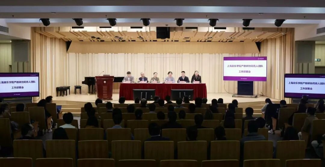 为深入贯彻教育强国、文化强国战略,落实市委、市政府推进实施“上海高等教育重服务强贡献计划”,强力服务支撑“上海市地方高校服务贡献能力跃升计划”,今天(4月2日)下午,2026年度上海音乐学院产教研协同育人团队工作部署会在北楼报告厅召开。校领导裴小倩、廖昌永、徐卫、汤隽杰、冯磊、陈云,全校产教研协同育人团队负责人、团队成员,相关职能部处和二级院系主要负责人出席会议。