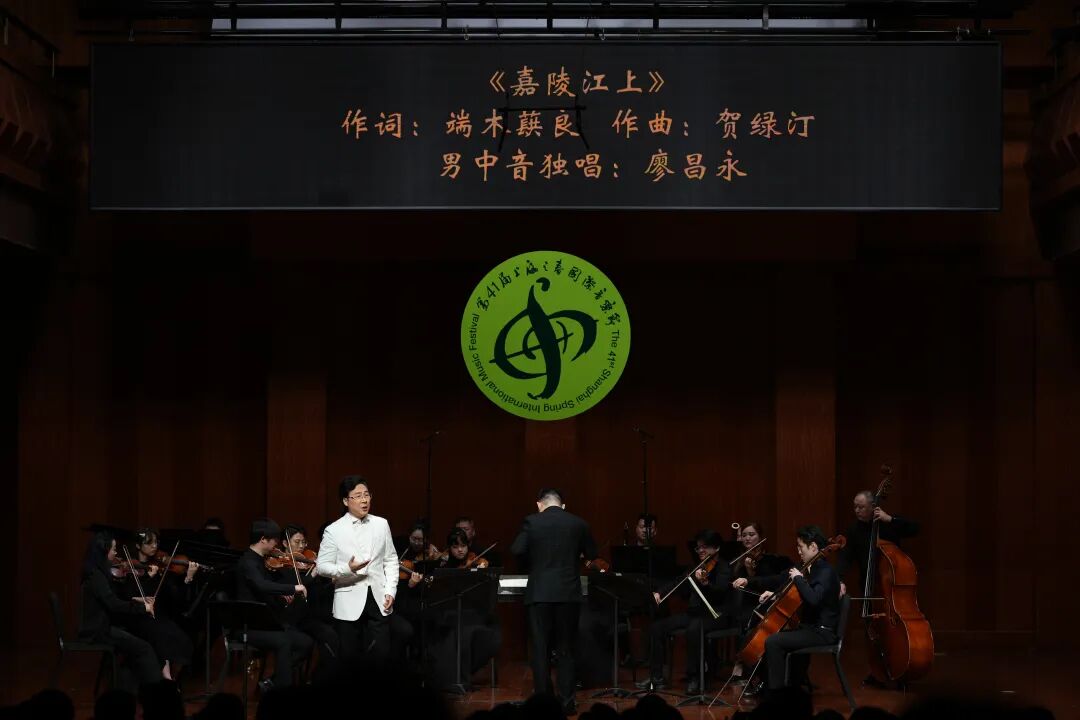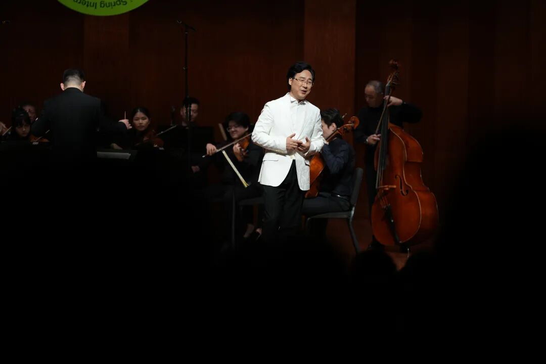 4月6日晚,第41届上海之春国际音乐节,上海音乐学院院长廖昌永携四位声乐获奖学生顾文梦、张曦、张功浩、乌列热,以一曲返场《我和我的祖国》为“中国艺术歌曲百年系列”音乐会温情谢幕。本场音乐会首次引入“上音独奏家室内乐团”——由青年教师张橹执棒,汇聚刘照陆、马勇、张润崯、巢晖、顾聪、陈坤等上音骨干教师与博士生。这是中国艺术歌曲首次以整场室内乐编制亮相,乐团以精致的管弦织体,为中国声乐注入交响性的新声。