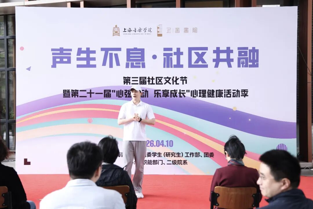 为深入贯彻教育部关于加强“一站式”学生社区综合管理模式建设的工作要求,全面响应落实健康中国战略部署,上海音乐学院第三届社区文化节暨第二十一届“心弦律动 乐享成长”心理健康活动季启动仪式于4月10日在“一站式”学生社区“和毅庄诚”广场举行。本届文化节以“声生不息·社区共融”为主题,在搭建多元文化交流平台、推动社区育人资源深度融合的基础上,同步组织开展各类体育健身活动,引导学生增强体质、锤炼意志,着力构建“一系一精品、一楼一特色”的特色社区文化格局。