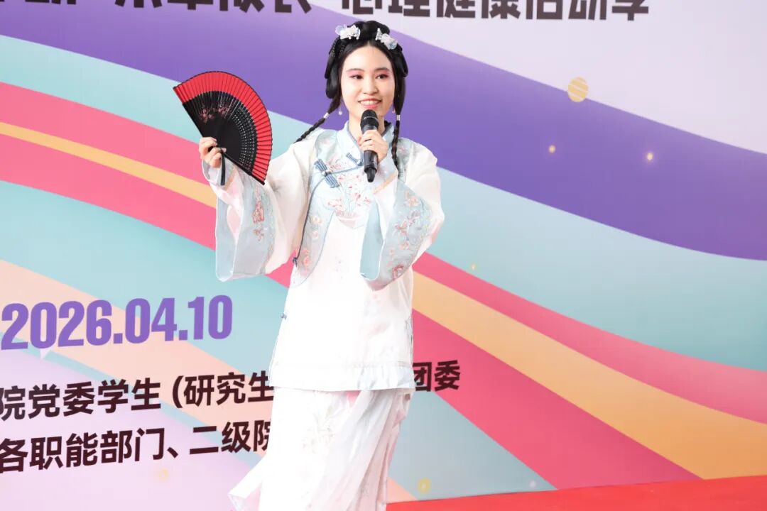 仪式在动感舞蹈《舞动社区,活力青春》中燃情开场,燃动的舞姿瞬间点燃了现场的青春热度;曲风流转,婉转悠扬的昆曲《牡丹亭·游园》将百戏之祖的雅致韵味娓娓道来;中阮独奏《石灰吟》清越激昂,在弦索铮鸣中彰显清冽而坚韧的中国风骨;武术展示以刚健有力的拳风登场,展现出上音师生蓬勃向上的精神面貌。最后,公共基础部体育教师卢一带领全场师生进行热身互动,将艺术展演与体育锻炼有机融合,更将现场气氛推向高潮。