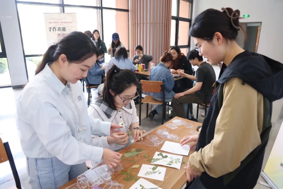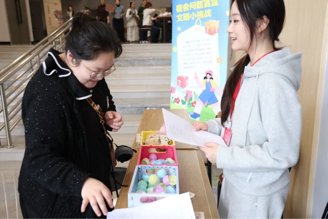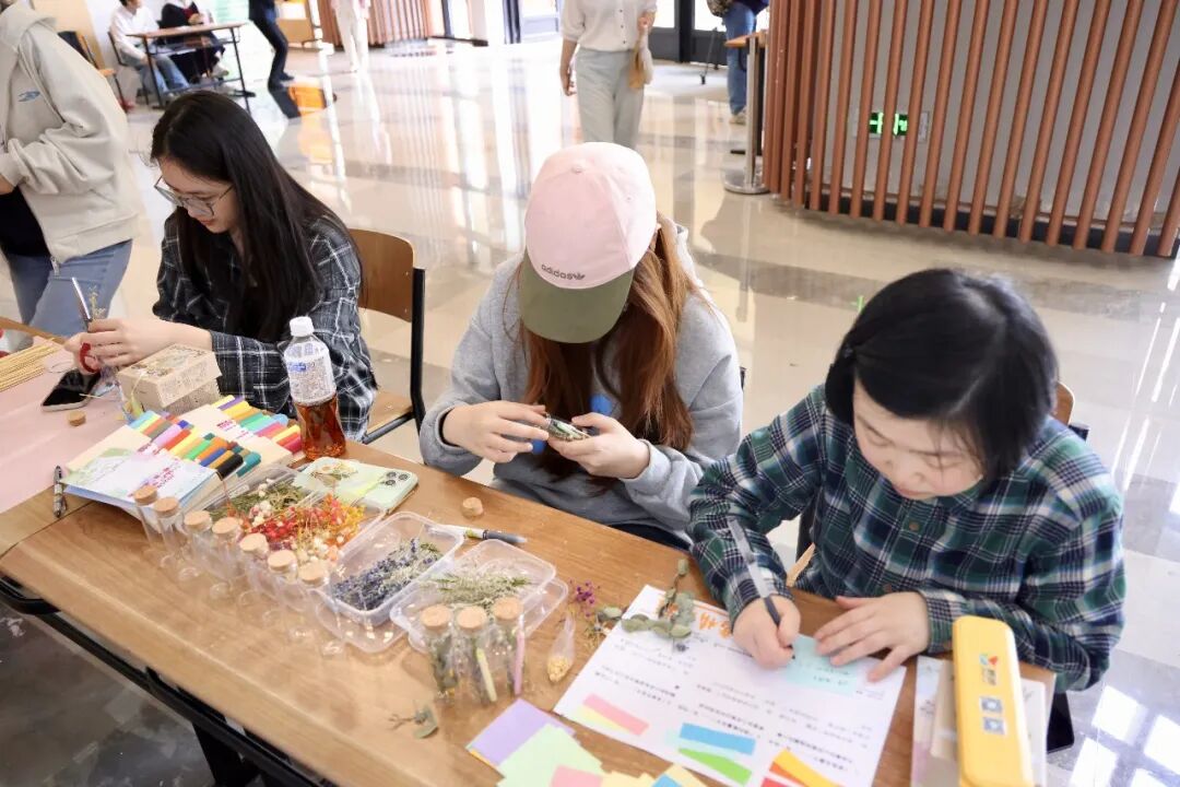 在非遗体验区,“流光入扇,漆韵成风”——非遗漆扇DIY、“赏歆雅韵·梨园探秘”戏曲体验、非遗编绳等活动,让师生近距离感受传统文化魅力;在心灵疗愈区,“幸福糖葫芦铺”“留香情绪罐”等活动,把快乐瞬间定格在笔尖;在趣味互动区,“宿舍问题盲盒·文明小挑战”“上音文创专属刮刮乐”“网络安全知识知多少?一起来挑战!”等摊位前排起长龙;在手工创意区,“拾春入页,花叶藏书”干花书签DIY等活动,让同学们在动手实践中感受美学熏陶;在宿舍服务区,社区辅导员、学生楼层长还设立“一楼一品”抢先看展位,提前预告全年的宿舍楼宇特色活动。