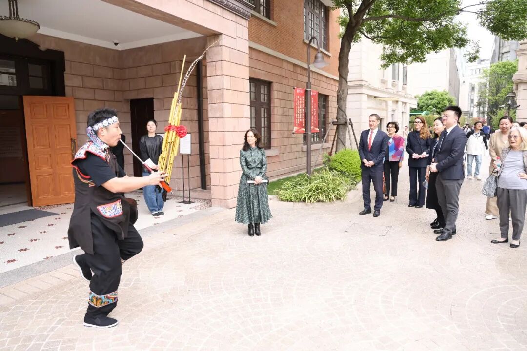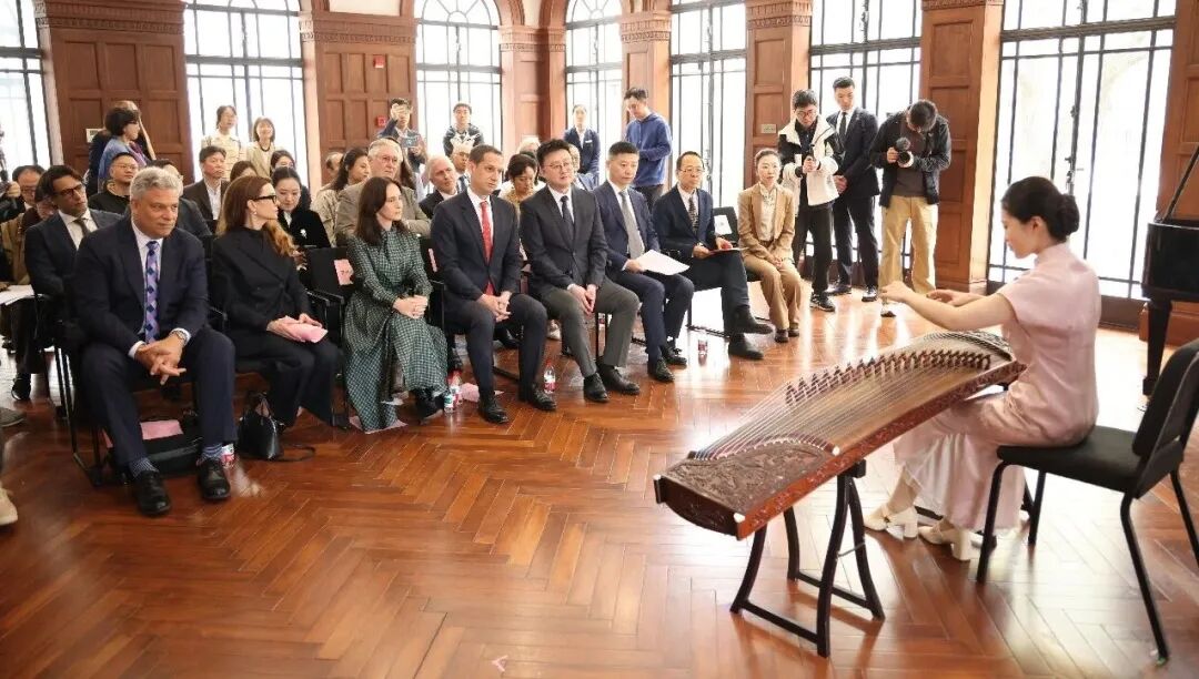 签约仪式后,来宾们观摩了小型演出。古筝独奏《高山流水》与棱境三重奏带来的施奈德《钢琴三重奏》,为现场嘉宾呈现了中西音乐艺术的交融之美。演出结束后,汤隽杰与冯磊陪同罗伟市长夫妇及大卫·斯图尔院长一行参观东方乐器博物馆,并观看贵州非遗乐器芦笙表演《迎宾曲》以及上音东方雅乐民族器乐弹唱组合表演的《祝福草原》,近距离感受中国传统音乐文化的独特魅力。